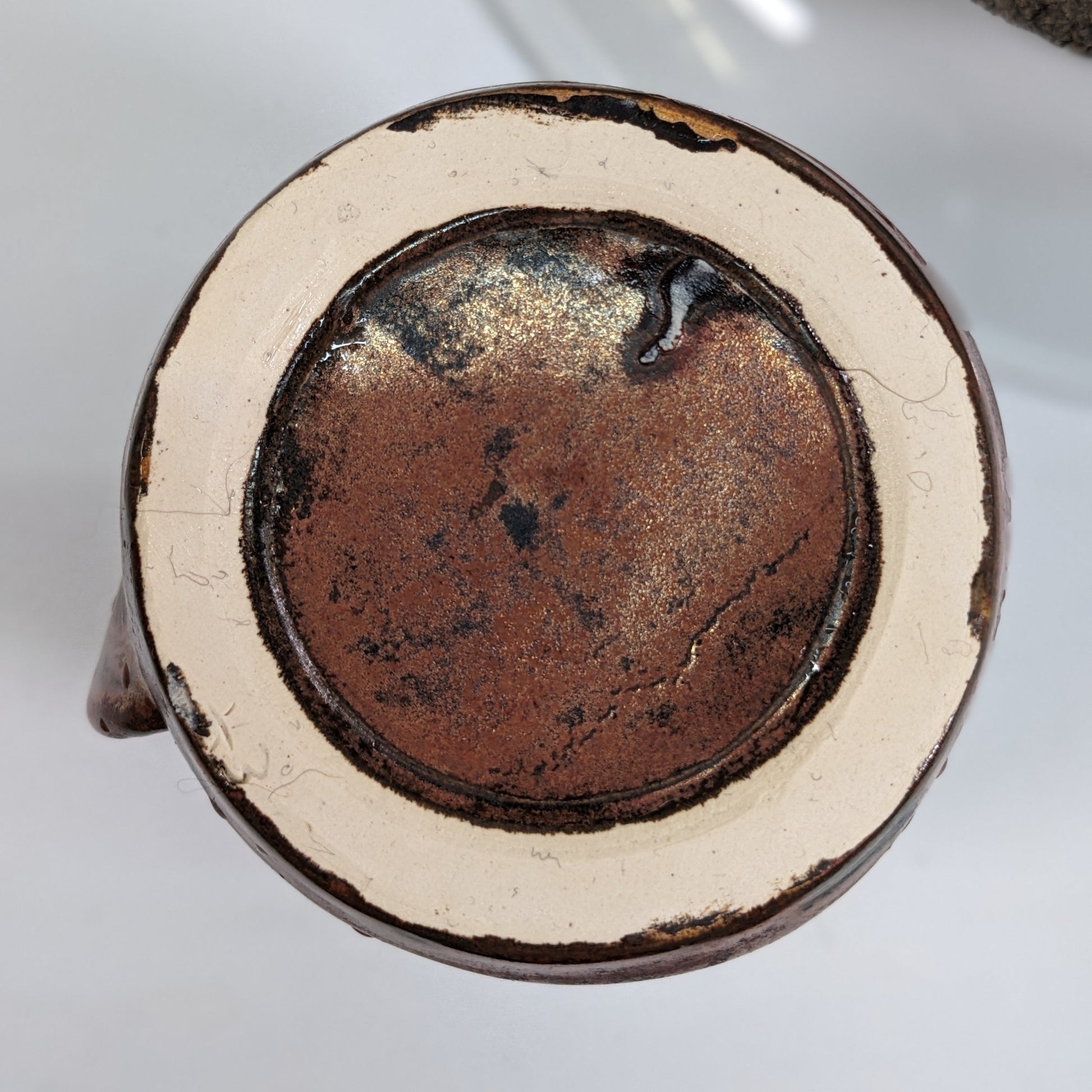 Rustikk håndtaksløs keramisk kopp med tommelstøtte